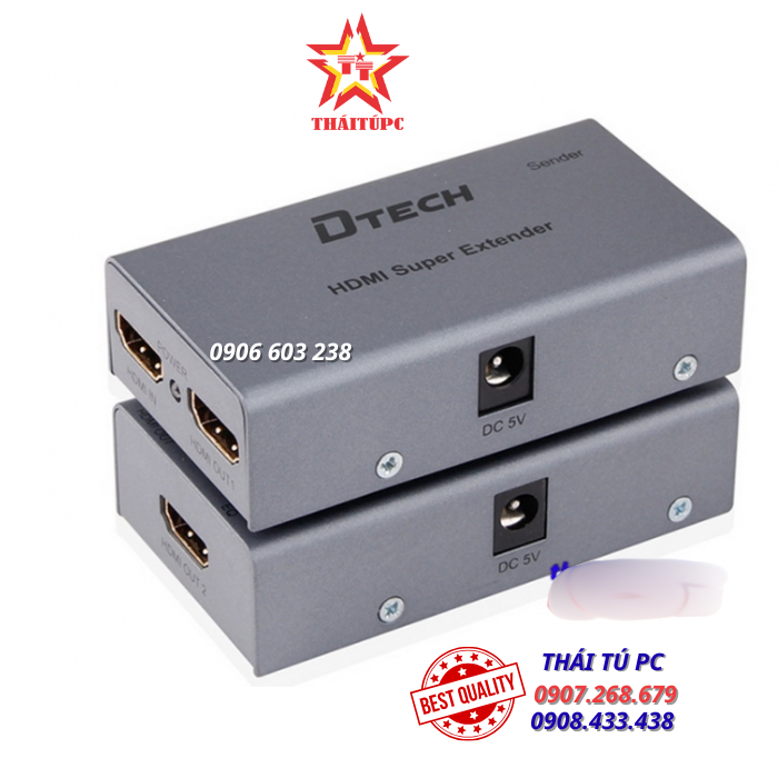 - Bộ khuếch đại tín hiệu HDMI sang LAN (HDMI to RJ45) Extender Dtech DT-7009C. Sử dụng chuyển đổi tín hiệu HDMI qua cáp mạng 60M