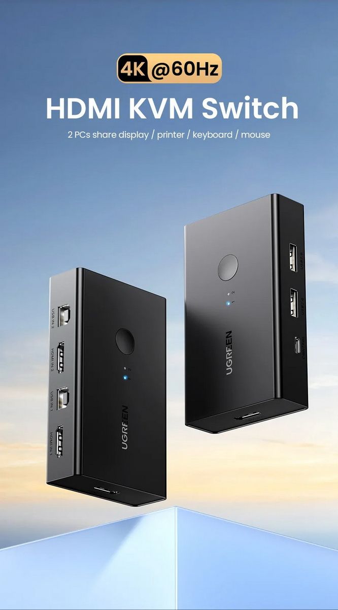 Bộ gộp tín hiệu KVM HDMI Ugreen 90478 này giúp bạn sử dụng một bộ bàn phím, chuột và máy in để tập trung điều khiển hai máy tính của mình trên một màn hình, giúp tối đa hóa năng suất và khả năng xem, đồng thời cải thiện nhận thức tình huống bằng cách cho phép thu thập nhanh dữ liệu từ nhiều máy tính cùng một lúc. Các kịch bản ứng dụng bao gồm thay thế máy tính để bàn trong văn phòng, hình ảnh y tế, phát sóng, hậu sản xuất, phòng điều khiển và kiểm soát, v.v.