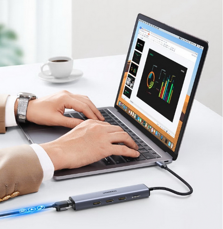 - Cáp chuyển USB-C 5 trong 1 Ugreen 20934 còn trang bị thêm 3 cổng USB 3.0 giúp bạn kết nối các thiết bị ngoại vi, và các thiết bị lưu trữ truyền tải dữ liệu tốc độ cao lên tới 5Gbps