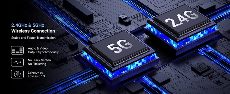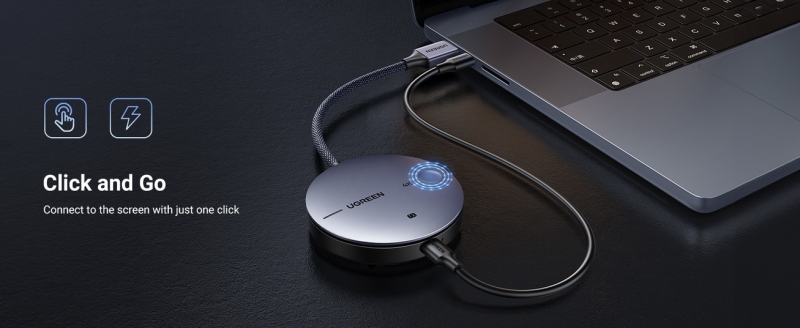 - Truyền không dây đường dài: Nhờ chip 5G mạnh mẽ và thiết kế ăng-ten kép, khoảng cách truyền tối đa của bộ truyền HDMI không dây Ugreen 90909A có thể đạt tới 50M. Ngay cả khi môi trường tín hiệu tương đối phức tạp, vẫn có thể đạt được đường truyền ổn định. Thiết bị cực kỳ dễ dàng sử dụng khi chỉ cần cắm là nhận không cần cài đặt driver, kết nối chỉ với 1 phím bấm.