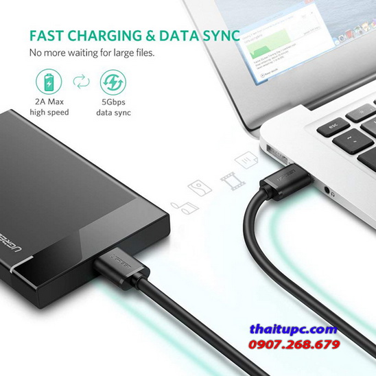 Cable USB 3.0 Ugreen (10841) giúp kết nối một bên ngoài ổ đĩa cứng di động USB 3.0 với máy tính để truyền tải file nhanh chóng và sạc điện thoại thông minh hay tablet trang bị cổng USB 3.0 Micro-B. Cáp USB 3.0 tốc độ cao, tốc độ truyền dữ liệu lên đến 5 Gbps, nhanh hơn 10 lần so với USB 2.0.