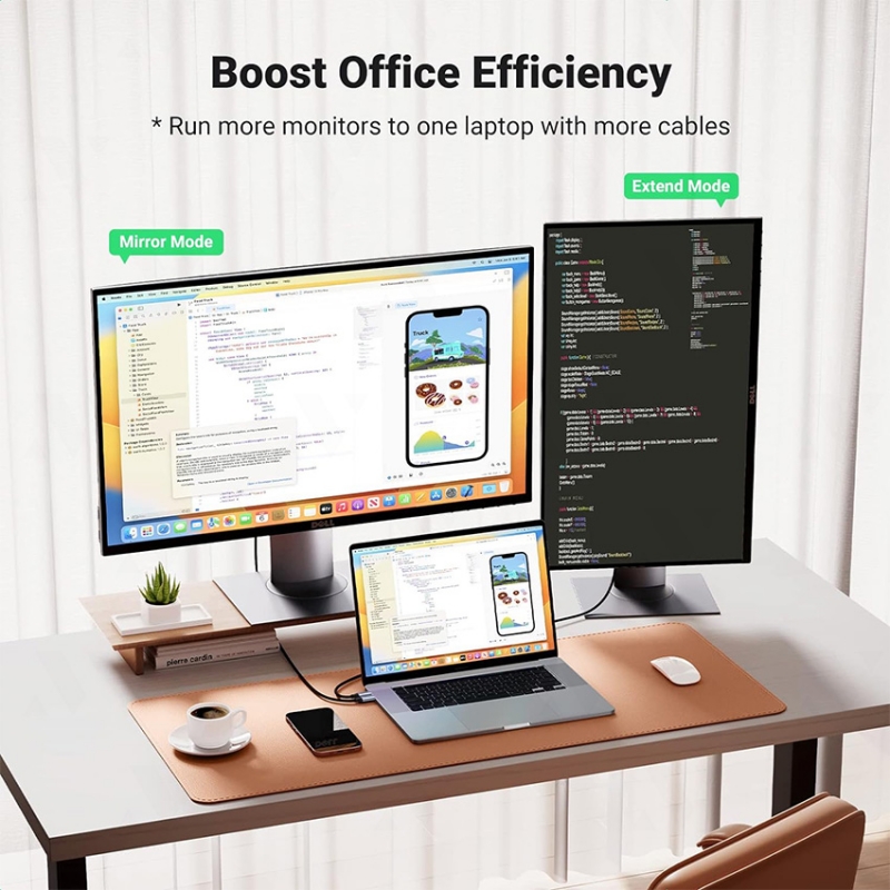 Dây cáp UGREEN USB C HDMI cho phép kết nối laptop hoặc điện thoại di động trực tiếp với màn hình, TV hoặc máy chiếu để truyền hình ảnh. Bằng cách biến điện thoại của bạn thành một máy tính, bạn có thể dễ dàng chia sẻ hình ảnh từ điện thoại lên TV hoặc thiết bị khác.