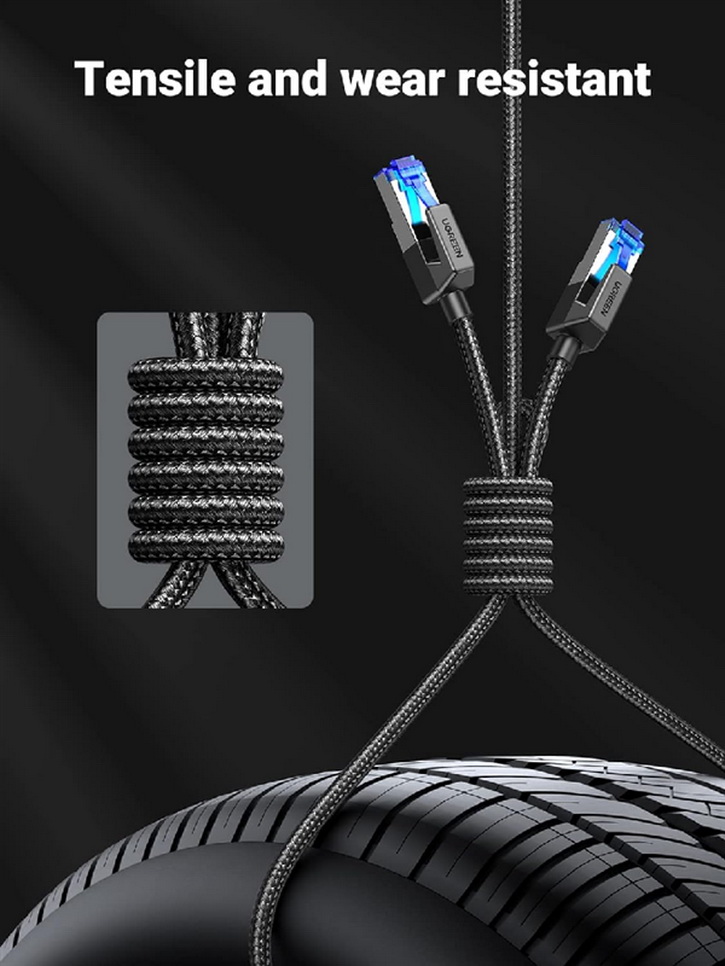 Ugreen 80429 Cáp mạng CAT8 được bọc bằng dây bện cotton chất lượng, giúp cáp LAN chắc chắn và bền hơn. Thử nghiệm chứng minh sợi cáp internet này có thể uốn cong ít nhất 10000 lần mà không bị đứt, rất phù hợp để sử dụng lâu dài.