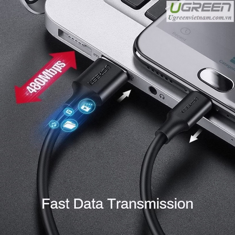 - Cáp UGREEN 60138 Với thiết kế đơn giản, gọn nhẹ nhưng sử dụng chất liệu nhựa PVC cao cấp và độ hoàn thiện cao. Lõi đồng nguyên chất bọc bạc chống nhiễu cho độ bền cao. Kèm với công nghệ sạc nhanh Quick Charge 3.0 - 5V/2.4A (max) tăng tốc sạc cho thiết bị và tốc độ truyền tải dữ liệu 480Mbs