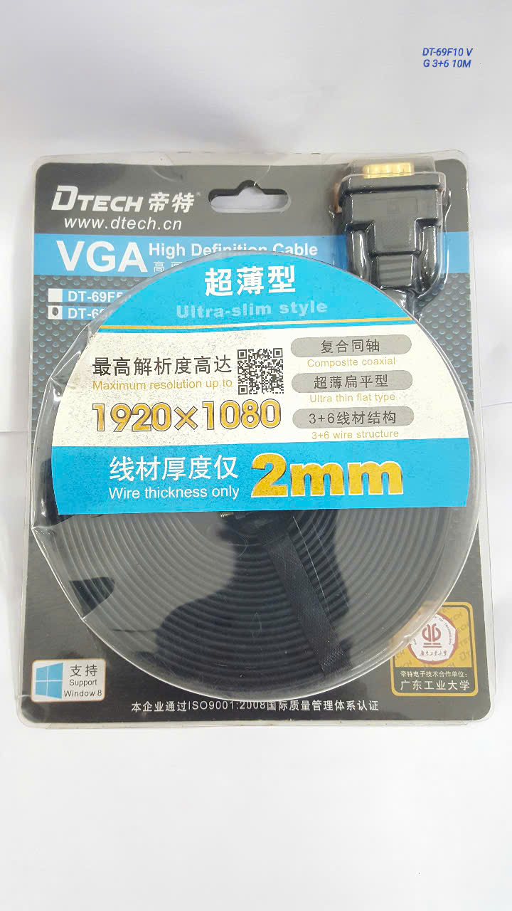 Cáp VGA 10m mỏng dẹp DTECH DT-69F10