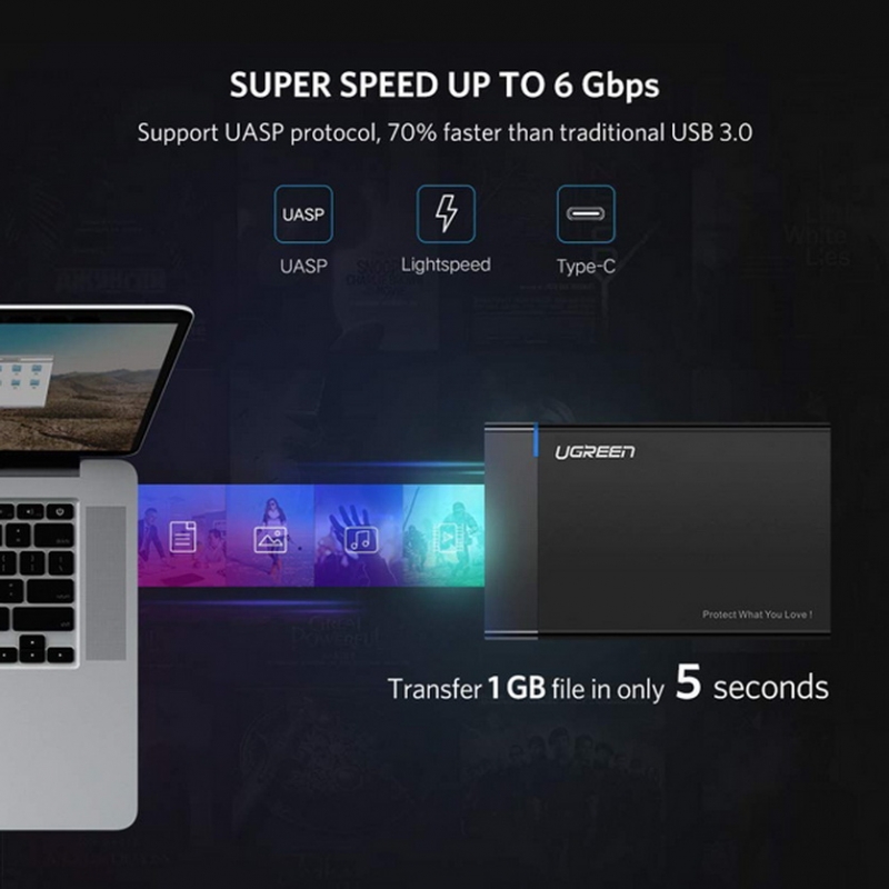 HỘP ĐỰNG Ổ CỨNG 2,5INCH SATA USB TYPE-C HỖ TRỢ 6TB CHÍNH HÃNG UGREEN 50743 CAO CẤP