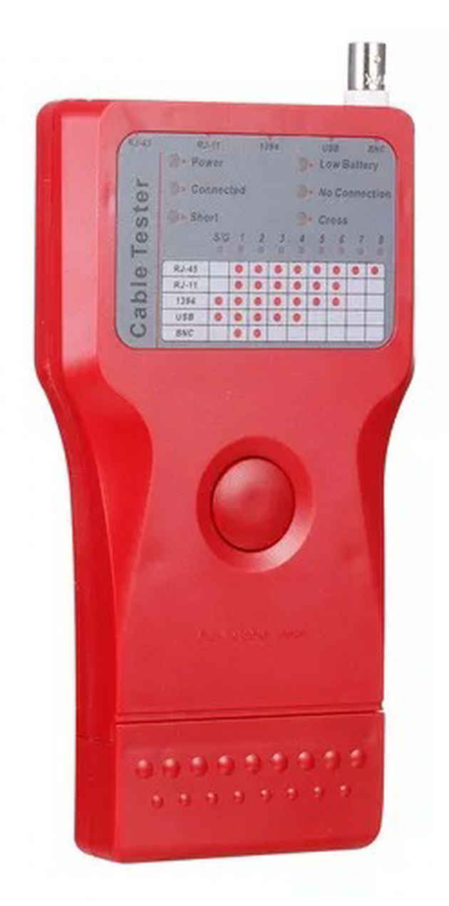 Bộ kiểm tra dây cáp mạng 5 chức năng trong 1 sản phẩm, máy có thể kiểm tra được các loại dây cáp: Cáp mạng Lan RJ45, cáp điện thoại RJ11, cáp đồng trục cáp camera cáp truyền hình cáp Coxial, cáp USB máy in, cáp firewire ieee 1394