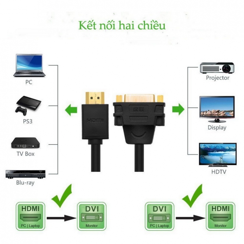 CÁP CHUYỂN ĐỔI HDMI TO DVI 24+5 CHÍNH HÃNG UGREEN 20136