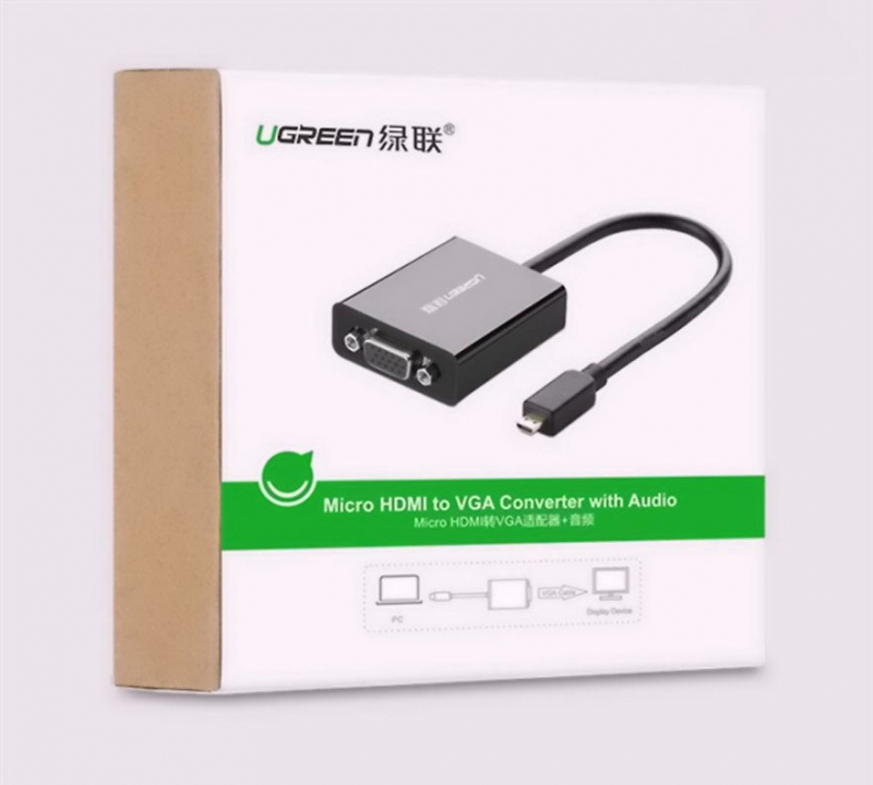- Cáp Micro HDMI sang VGA và Audio Ugreen 40268 được thiết kế nhỏ gọn với chế độ tự động nhận diện, dễ dàng sử dụng khi không cần cài đặt bất kì phần mềm, thao tác cài đặt driver nào khác, kết nối và sử dụng rất tiện lợi. Hỗ trợ truyền tải tín hiệu từ chuẩn kỹ thuật số micro HDMI sang chuẩn analog VGA và Audio, đồng bộ hóa tín hiệu hình ảnh và âm thanh (Cổng Audio 3.5mm) không bị ảnh hưởng, hoặc delay.