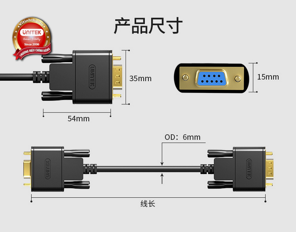 Cáp COM 9 chân nối dài 3m Unitek Y-C708ABK