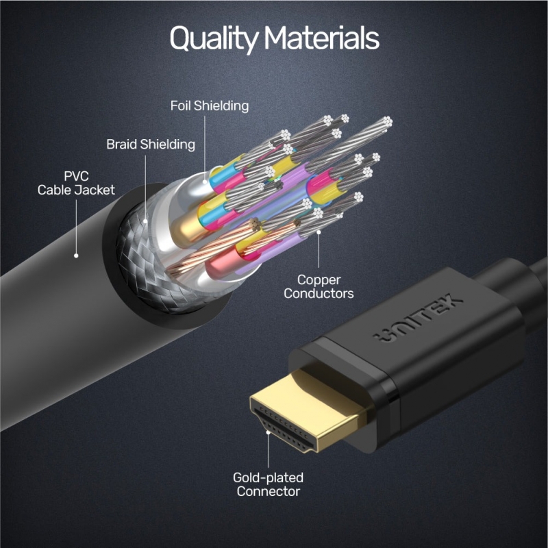 Cáp UNITEK Micro HDMI với thông số kỹ thuật mang lại trải nghiệm chơi game 3D và hình ảnh 4K UHD. Các vật liệu cao cấp tối đa hóa hiệu suất để mang đến cho bạn cảm giác thích thú lý tưởng.