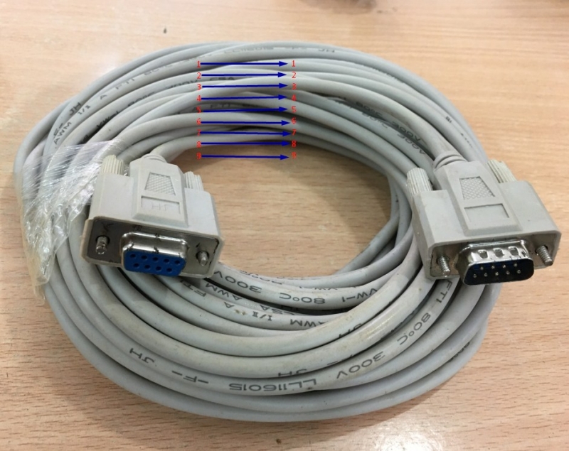 Cáp kết nối được đúc hai đầu kết nối tín hiệu được thiết lập theo chuẩn kết nối song song 1-1;2-2;3-3;4-4;5-5;6-6;7-7;8-8;9-9.