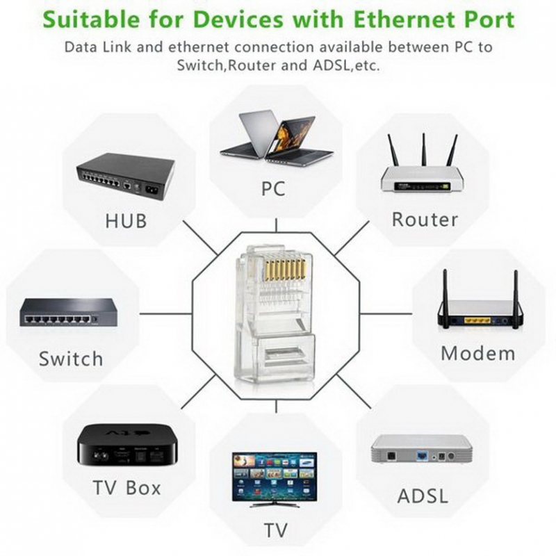 Đầu UTP Ugreen 20331 được sản xuất bằng chất liệu cao cấp bao gồm các chân bấm bằng đồng nguyên chất mạ vàng 24K (lớp mạ dầy 50 micro met) và chất liệu nhựa cao cấp giúp đảm bảo khả năng dẫn truyền tín hiệu của các sợi cáp mạng cat5, cat5e.