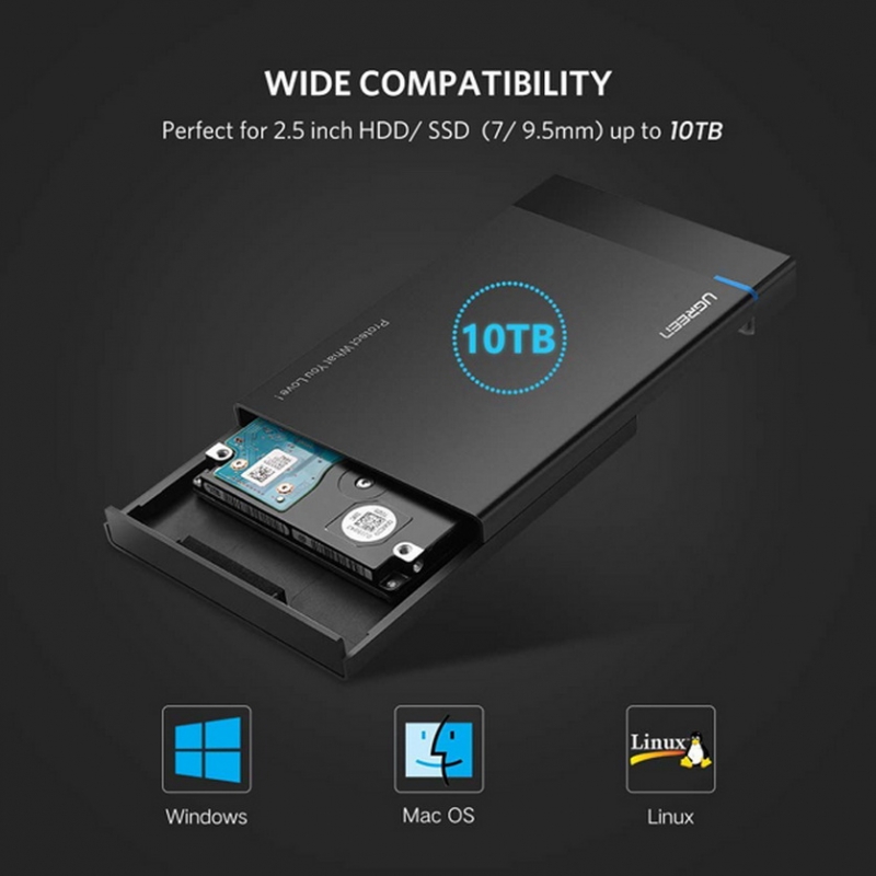 HỘP ĐỰNG Ổ CỨNG 2,5INCH SATA USB TYPE-C HỖ TRỢ 6TB CHÍNH HÃNG UGREEN 50743 CAO CẤP